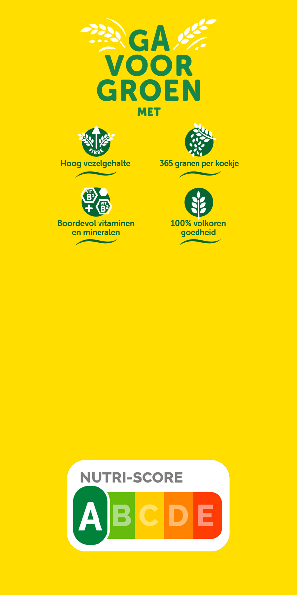 De keuze voor Weetabix is simpel, omdat al onze heerlijke graanproducten een groene score halen in het Nutri-Score-etiketteringssysteem. De gezondheid van onze consumenten komt namelijk altijd op de eerste plaats.